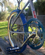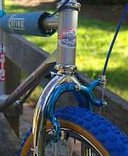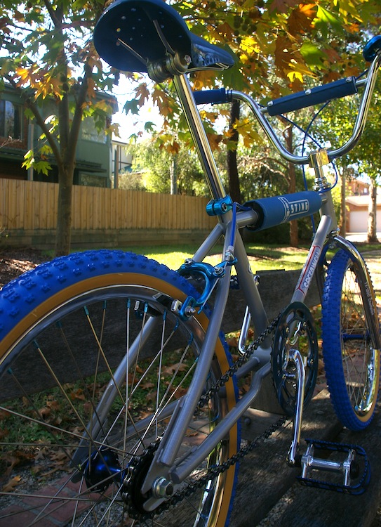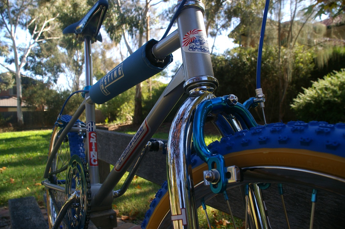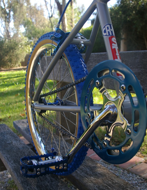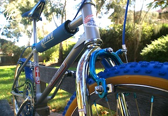 Although this frame is identical to the popular Malvern Star SuperMax CrMo, I have found very little information or photos to work from. The Malvern Star equivalent bike would have had a fluted seat post which would have been anodised blue along with the rims, handlebars and stem. I considered this for this bike but wanted some chrome on the bike to tie in with the beautiful rims and forks.
