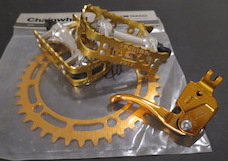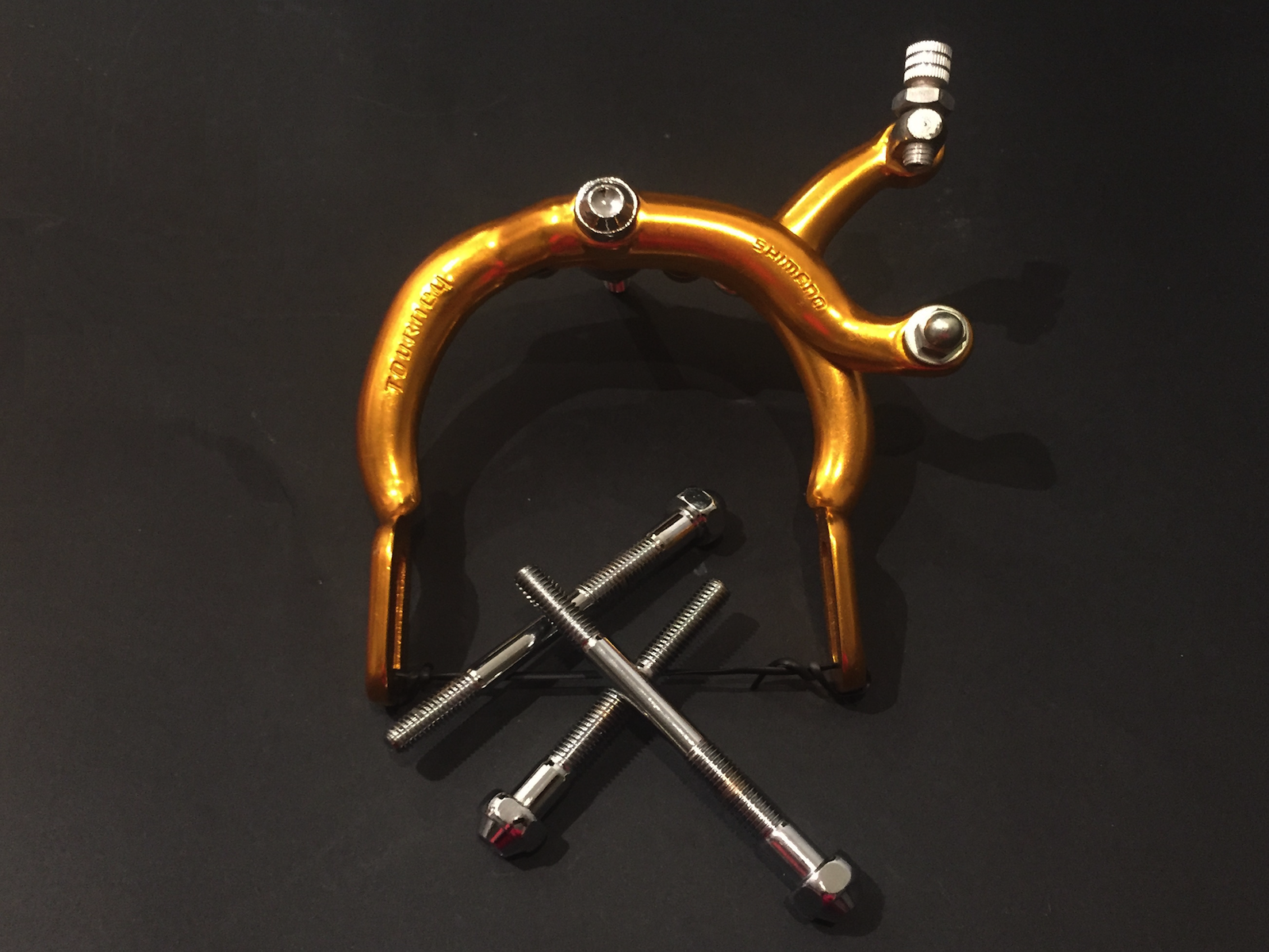 With the frame and accessories colours already decided for me, the collection for gold parts was on in ernest. Shimano parts were the obvious choice to match the 600 cranks that Benny was preparing and soon I had the NOS chain ring, DX lever and a Takagi chain ring guard. Not many people realise that Takagi was purchased by Shimano in the early 80s and thus it is in fitting with the Shimano theme.