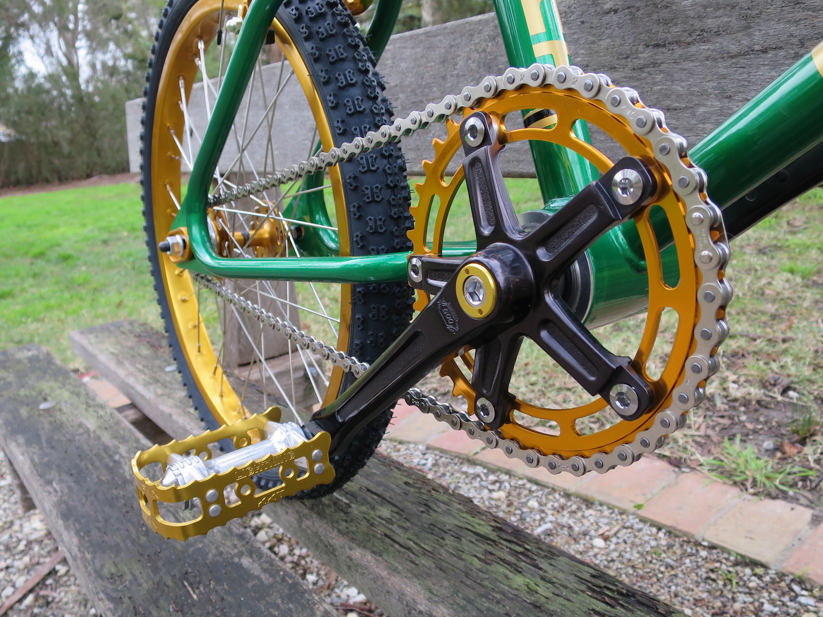 The KKT pedals were sourced from the US and they are absolutely mint and in my mind are perfect for this sort of build. My other choice - the Shimano DX pedals - were way out of my price range and possibly might have looked a little heavy for this build.