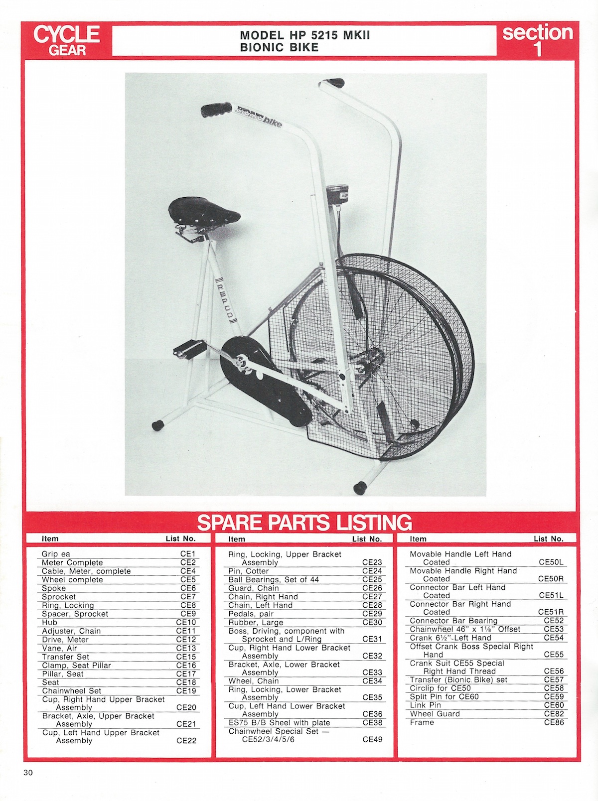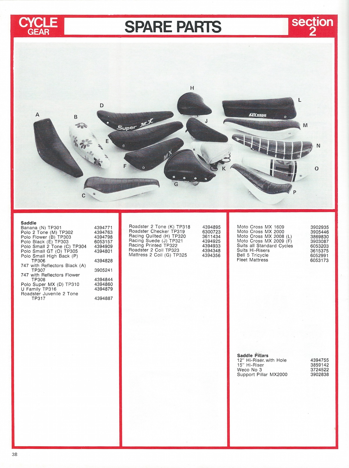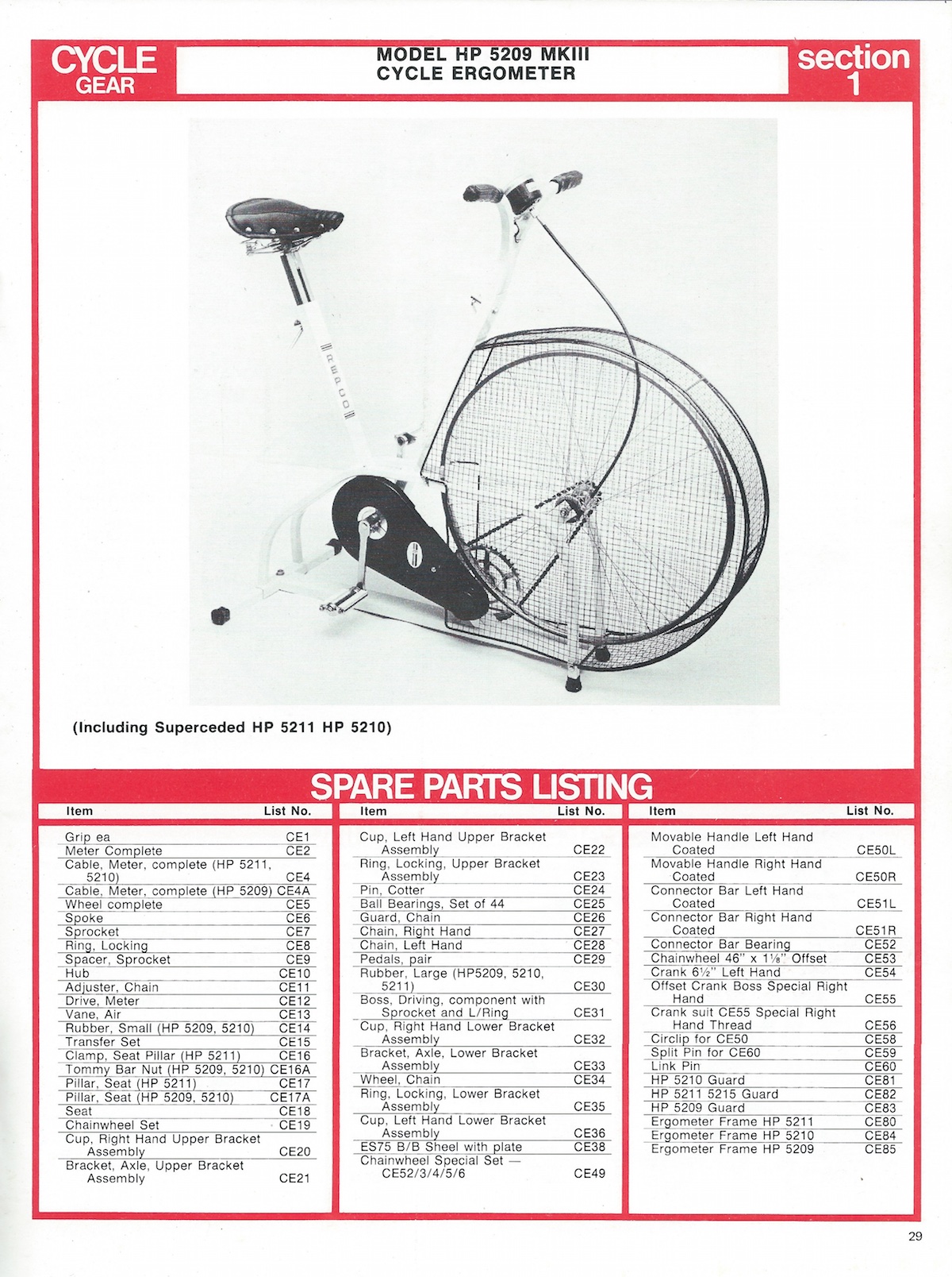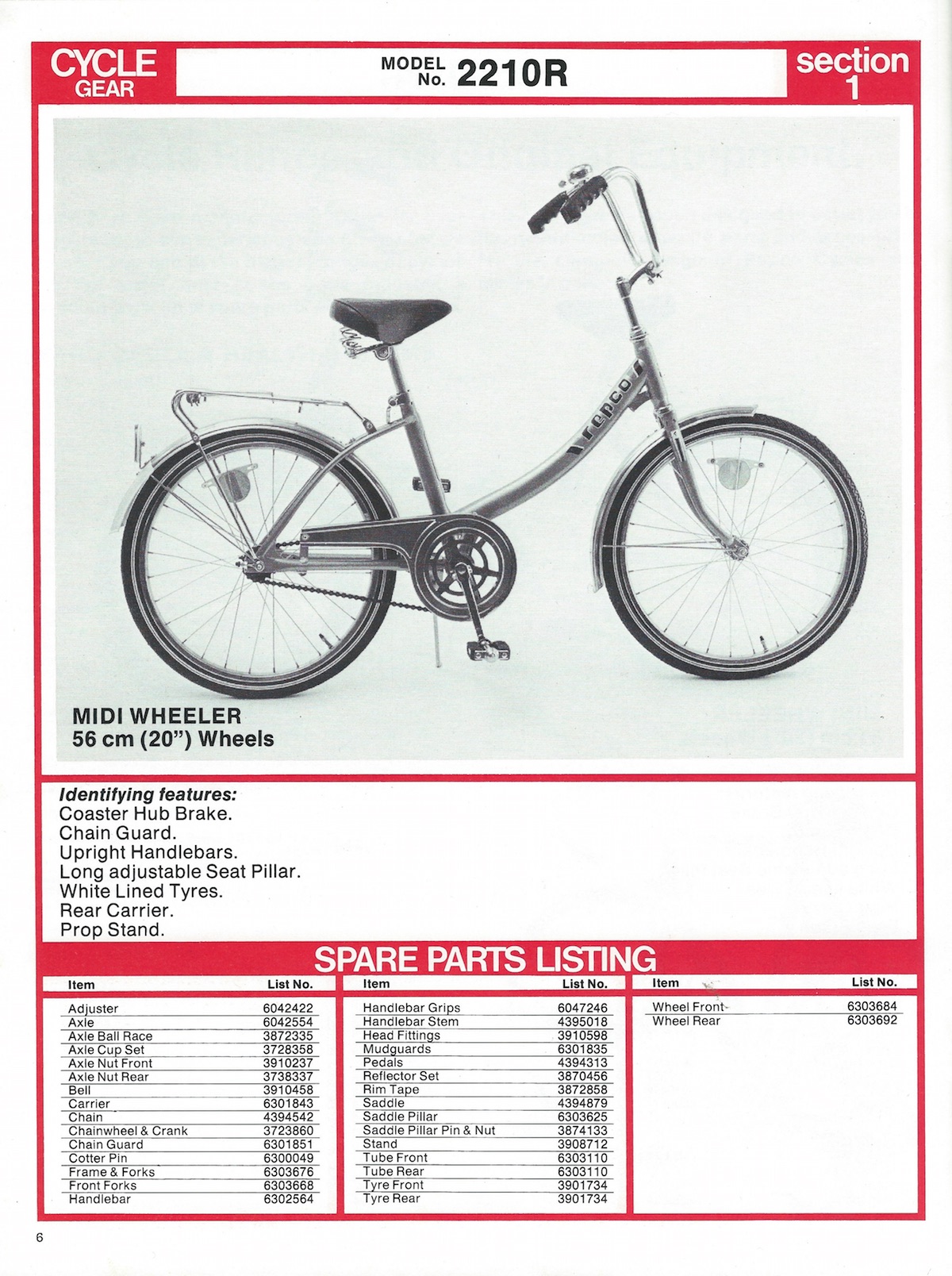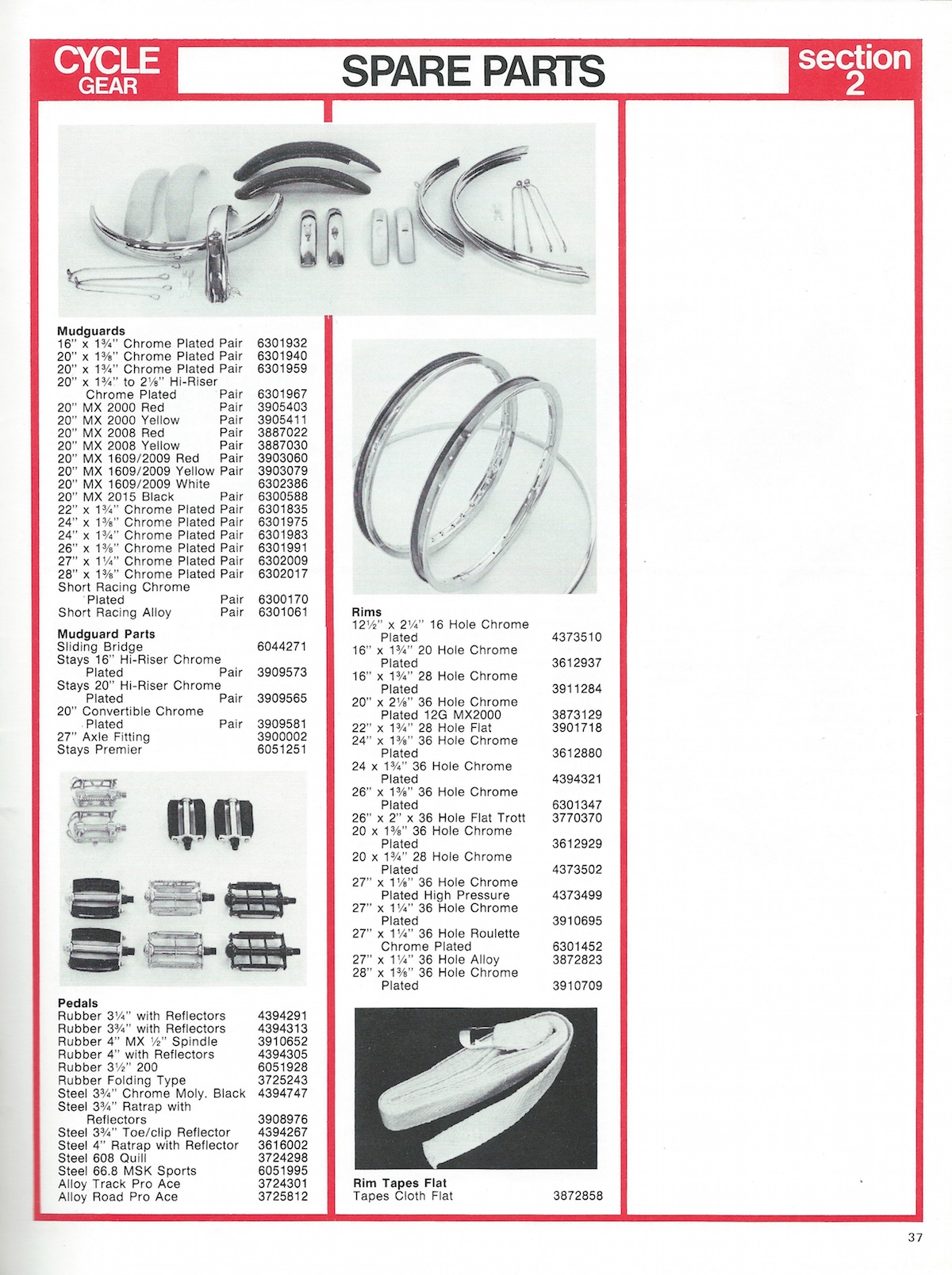 The second half of the catalogue is devoted to spare parts and accessories. Every single part of the bike range is available as a spare part including the 5/16" axle washer (part number 6056644) and the 1/8" Ball Bearing (part number 6042872). Accessories range from headlamps, bells and horns through to trouser bands.