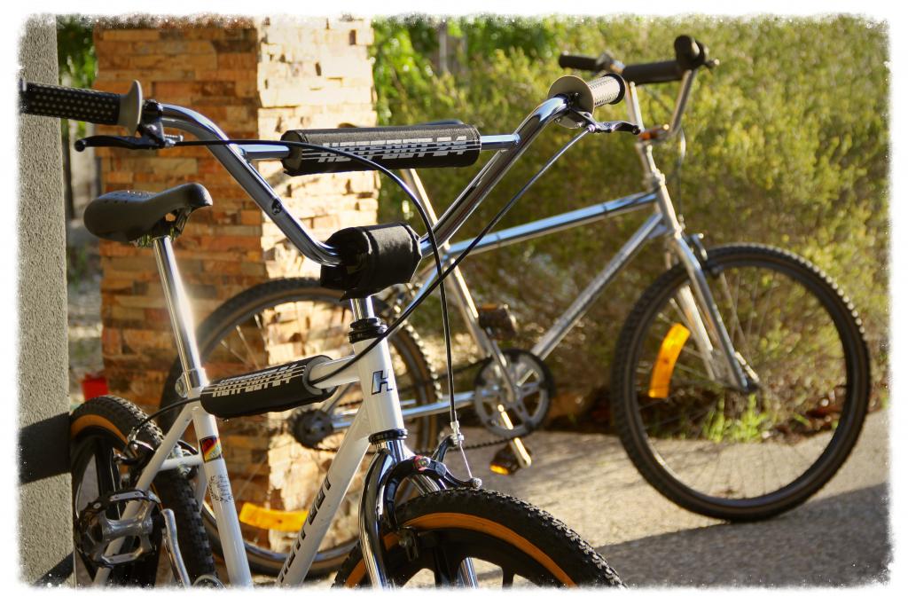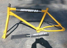 So by now I have a few Hotfoots - including some that I ride and some that are destined to hang on my garage wall for ever - but I find myself continually opting to ride my '95 Mongoose Menace over these other bikes. Why? The simple reason is that the geometry and size of the Hotfoots make them less comfortable to ride than most mid-school or new-school bikes. The Mongoose isn't large (with a top tube length of 19½ inches or thereabouts compared to a Team's 18" or so) but the geometry of the bike makes the seat post slightly more laid back / less upright making the frame feel much bigger.
