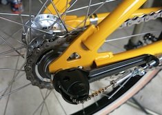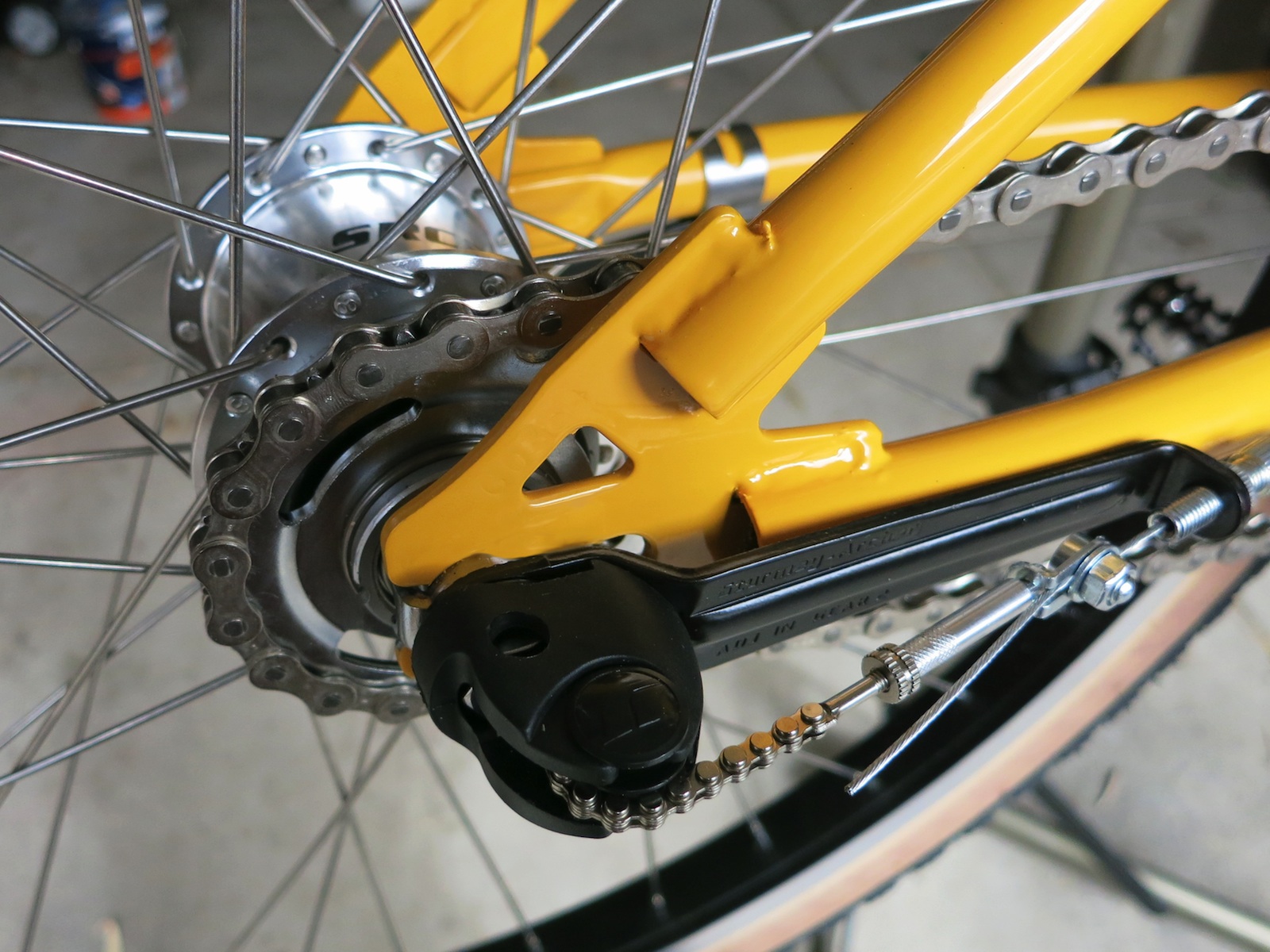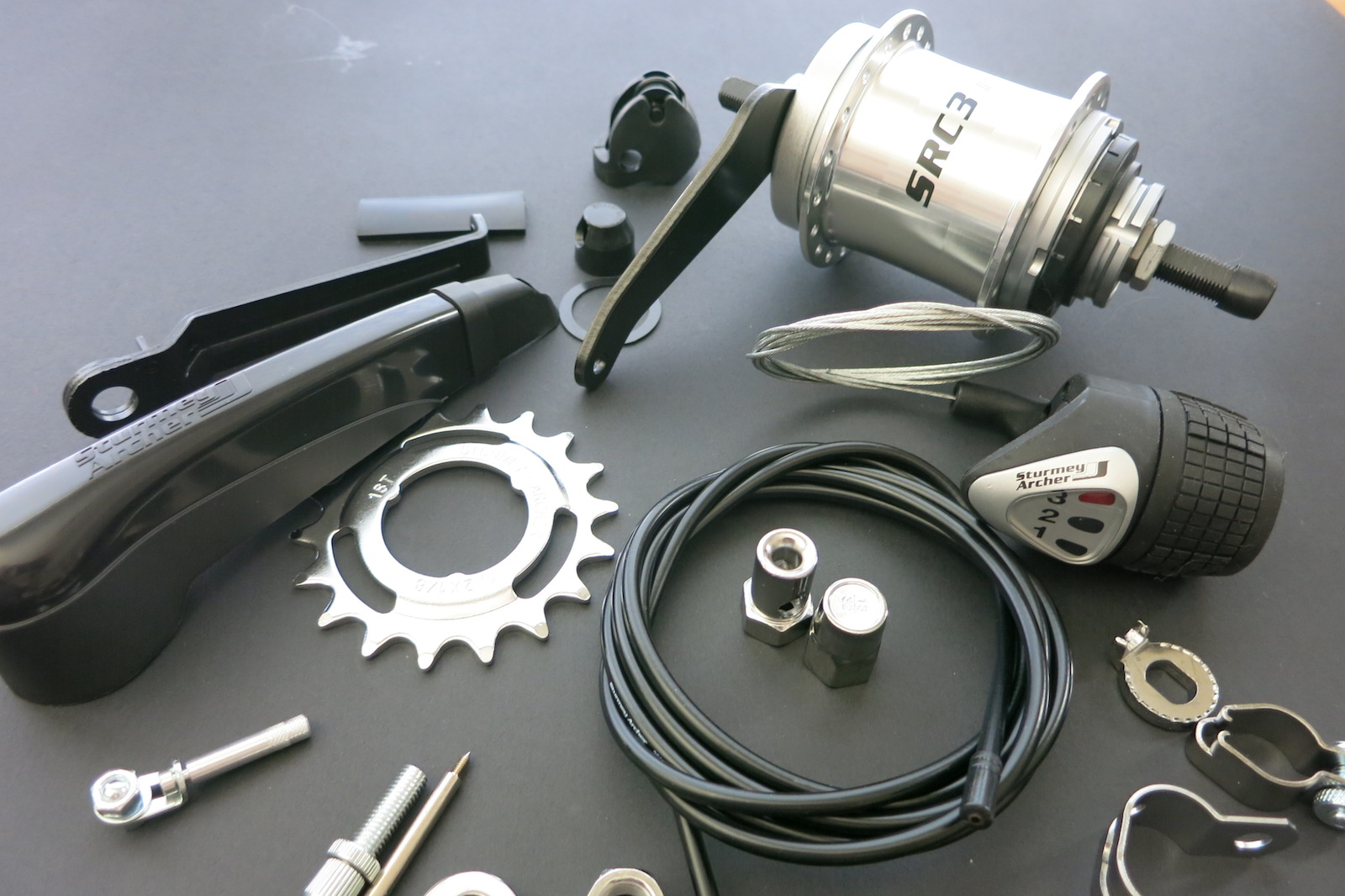 Fitting and adjusting the Sturmey Archer hub and its shifter is really simple due to its multiple adjusters. The trick is simply to adjust it until the shifting chain is under tension in top gear (3rd). What I did notice when riding the bike is that you can shift up gears under load but you have to back of a touch to get it to down-shift.