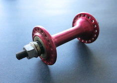 Unlike most alloy equipment from the '80s, these hubs are painted rather than anodised. I stripped the red paint off using normal paint stripper but could not remove it from the stamped Shimano logo or from other details. The paint also seemed to have penetrated the alloy leaving it a faint pink / red colour .. in frustration I gave the hub a caustic soda bath. It removed the remaining paint and 'staining' ready for polishing.