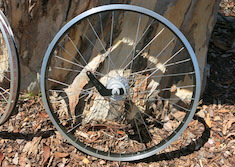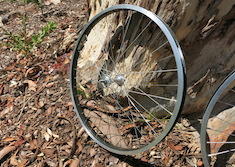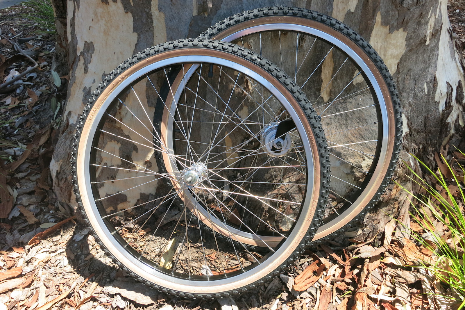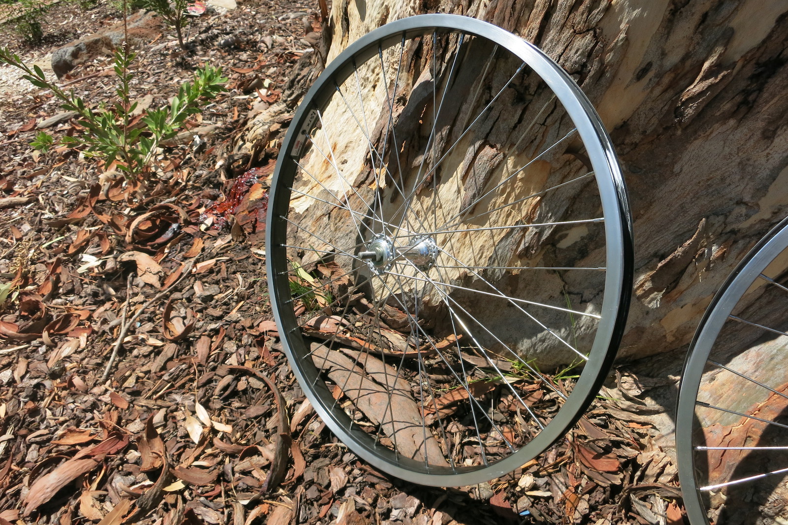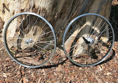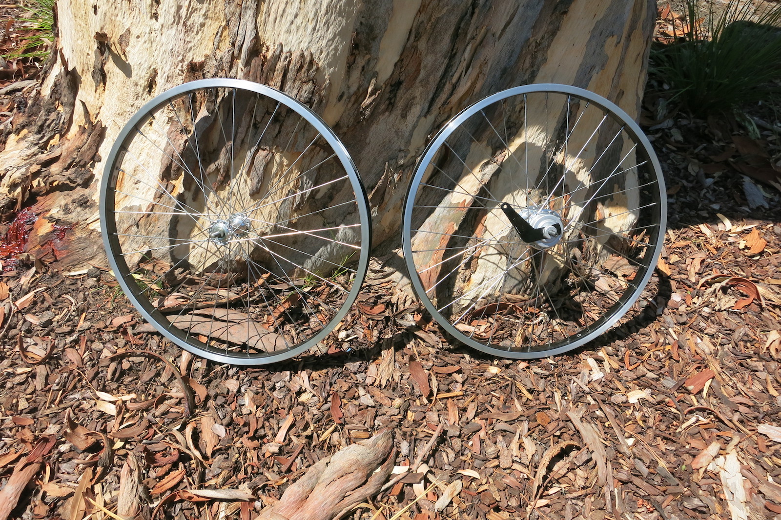 When I first received the bike, I pulled off the rusty 24" steel rims and threw out on a council rubbish pickup assuming I would replace them with a NOS of 24" alloy rims. A couple of months went by and no 24" rims of any sort popped up on eBay and I was wishing I had kept the steel rims and had them re-chromed. Finally a set of Weinmann 7X rims turned up on eBay and I bought them within seconds of seeing them .. the freight from the US cost more than the rims themselves. I have been monitoring eBay and have not seen any 24" rims since!