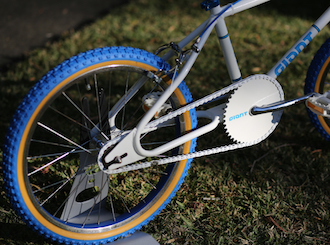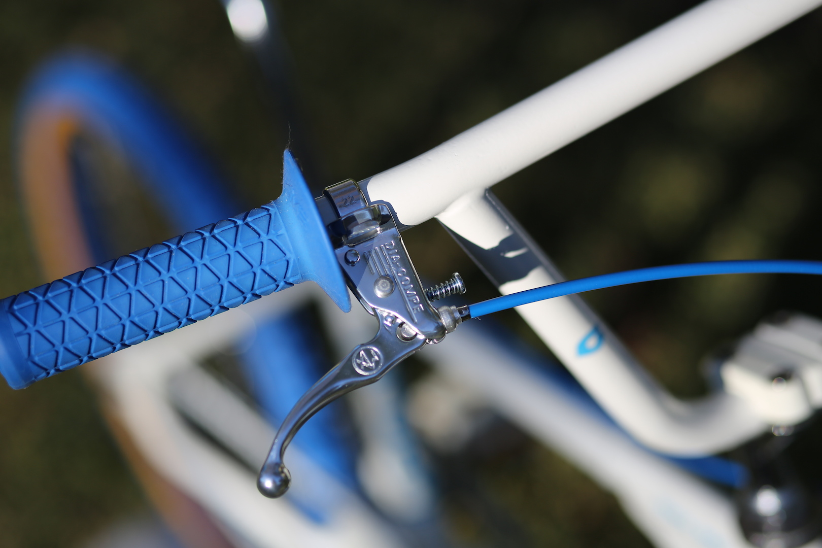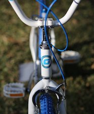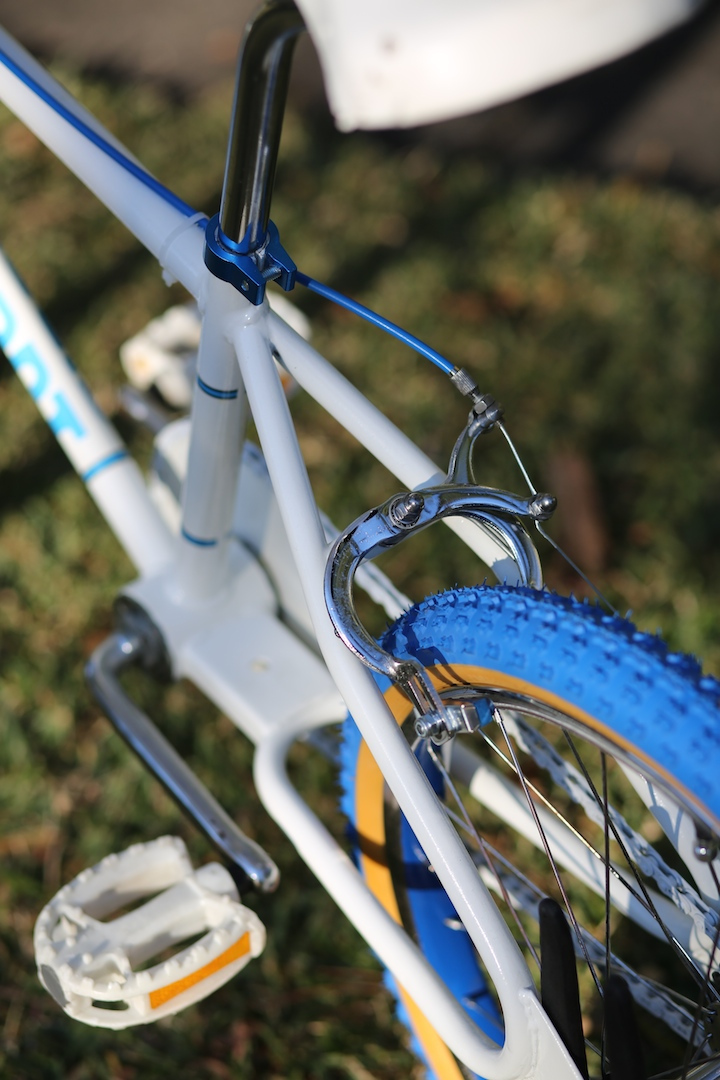 New parts were purchased and added to the build: Kenda Comp 3 20×1.75 tyres, Ame Grips, Dia Compe brake levers, seat post clamp and blue brake cables and pads as well as a new white chain. The addition of all these new components pushed my build costs to $117, just over my initial budget.