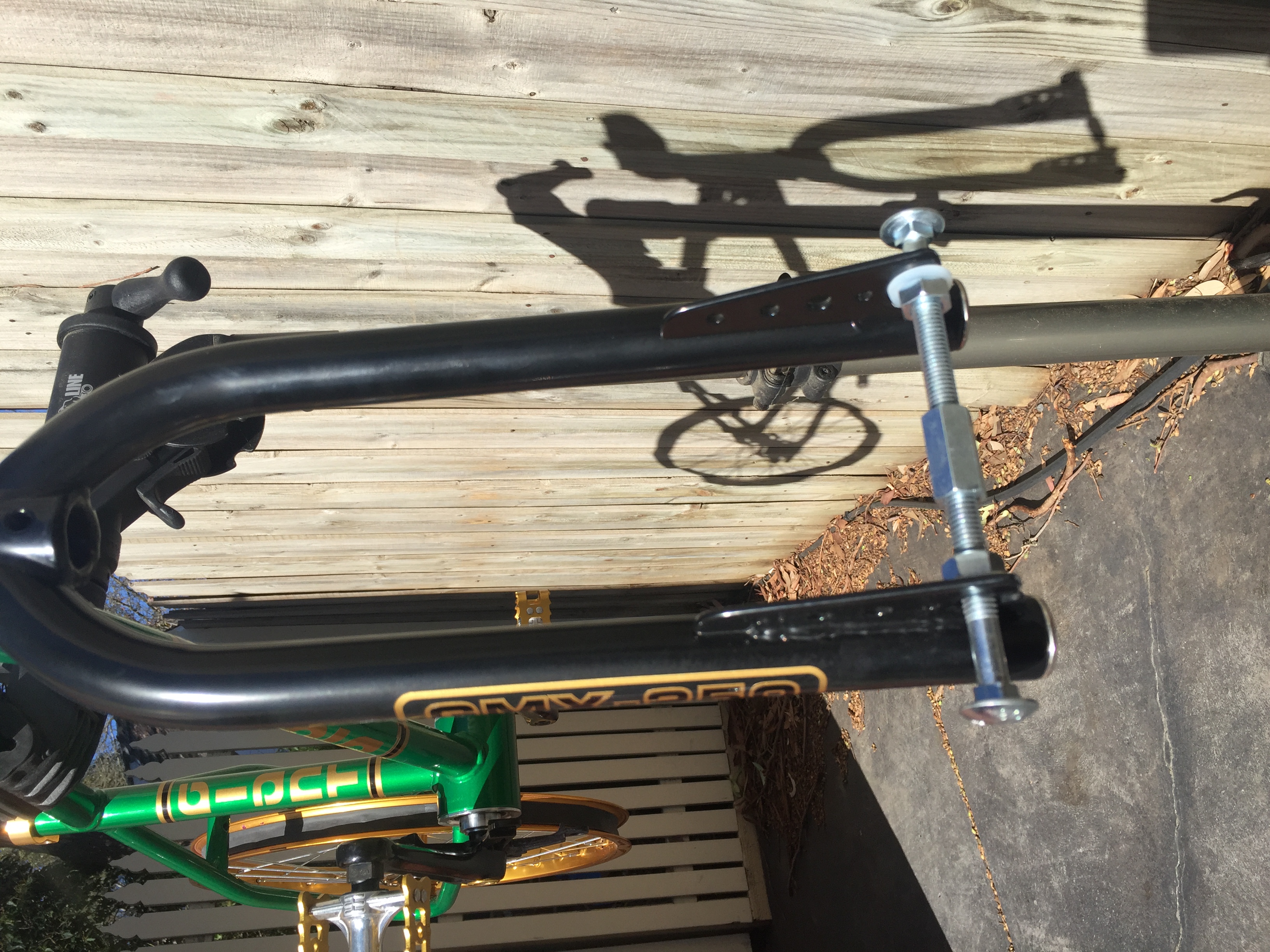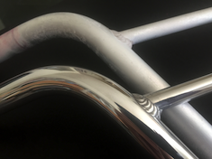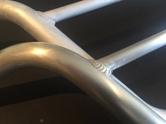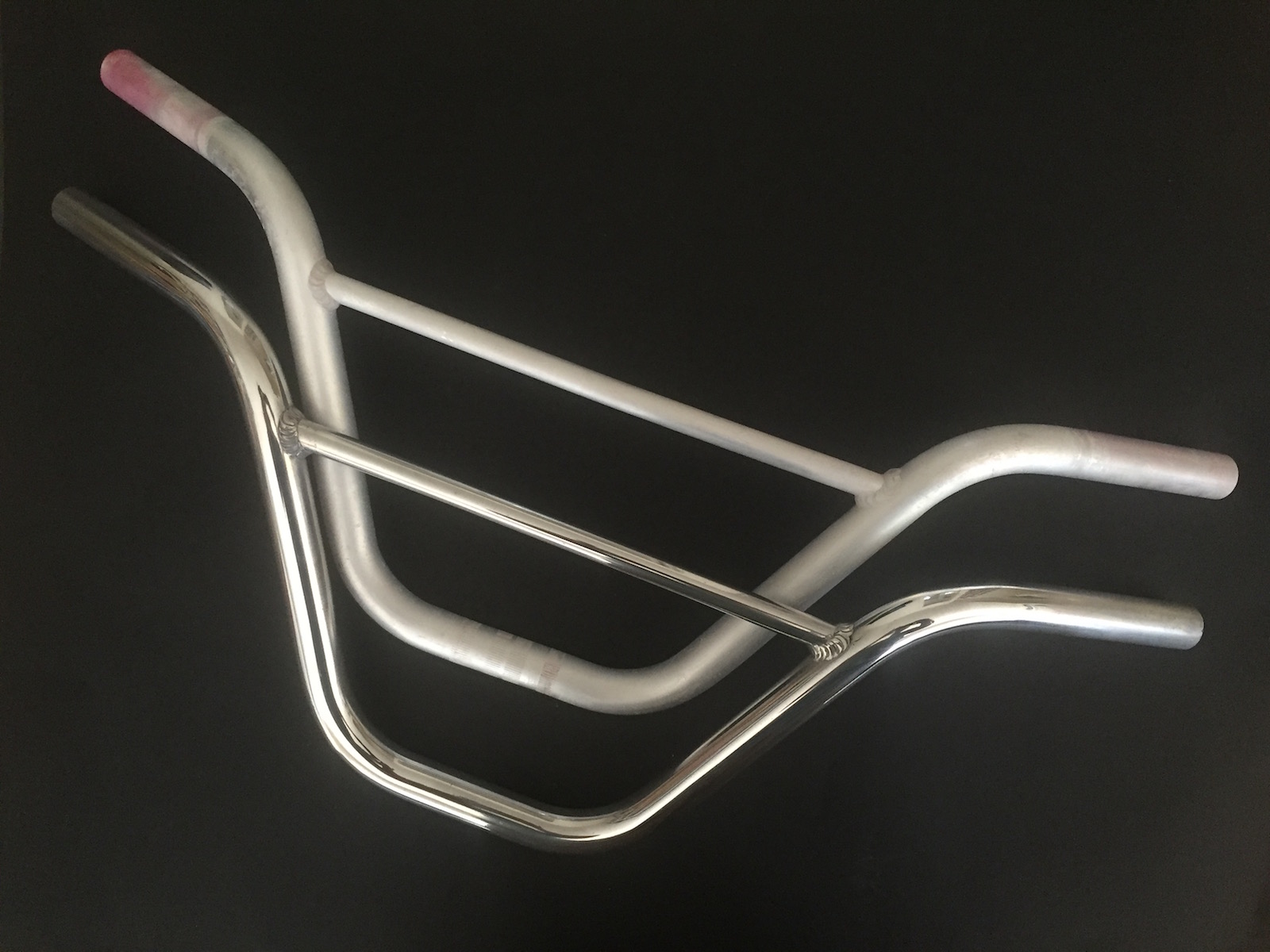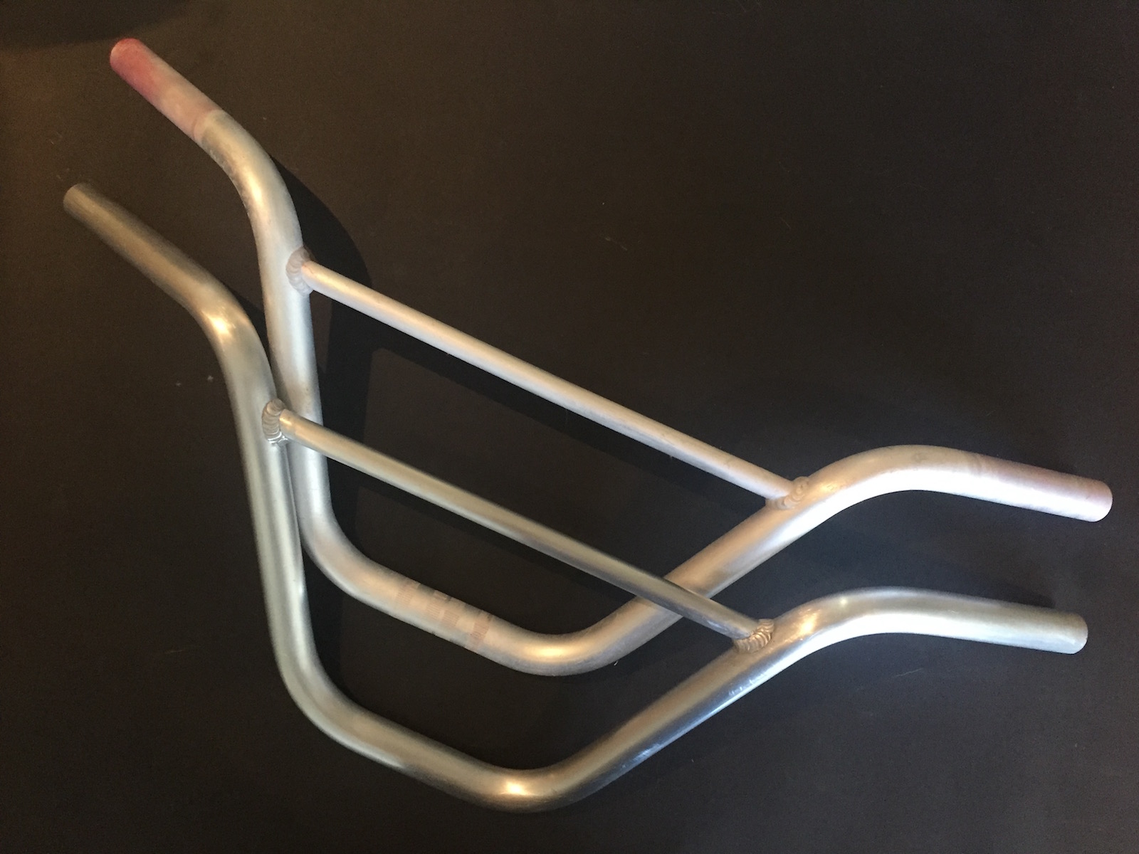 The pics below show the bars before and after the stripping. The red was hard to get off both sets of bars even with me agitating the surface regularly with a toothbrush. and I ended up stopping the process early before to much damage was done to the raw alloy but at the same time leaving some colour on the bar ends and in various spots where it had obviously penetrated the metal more.