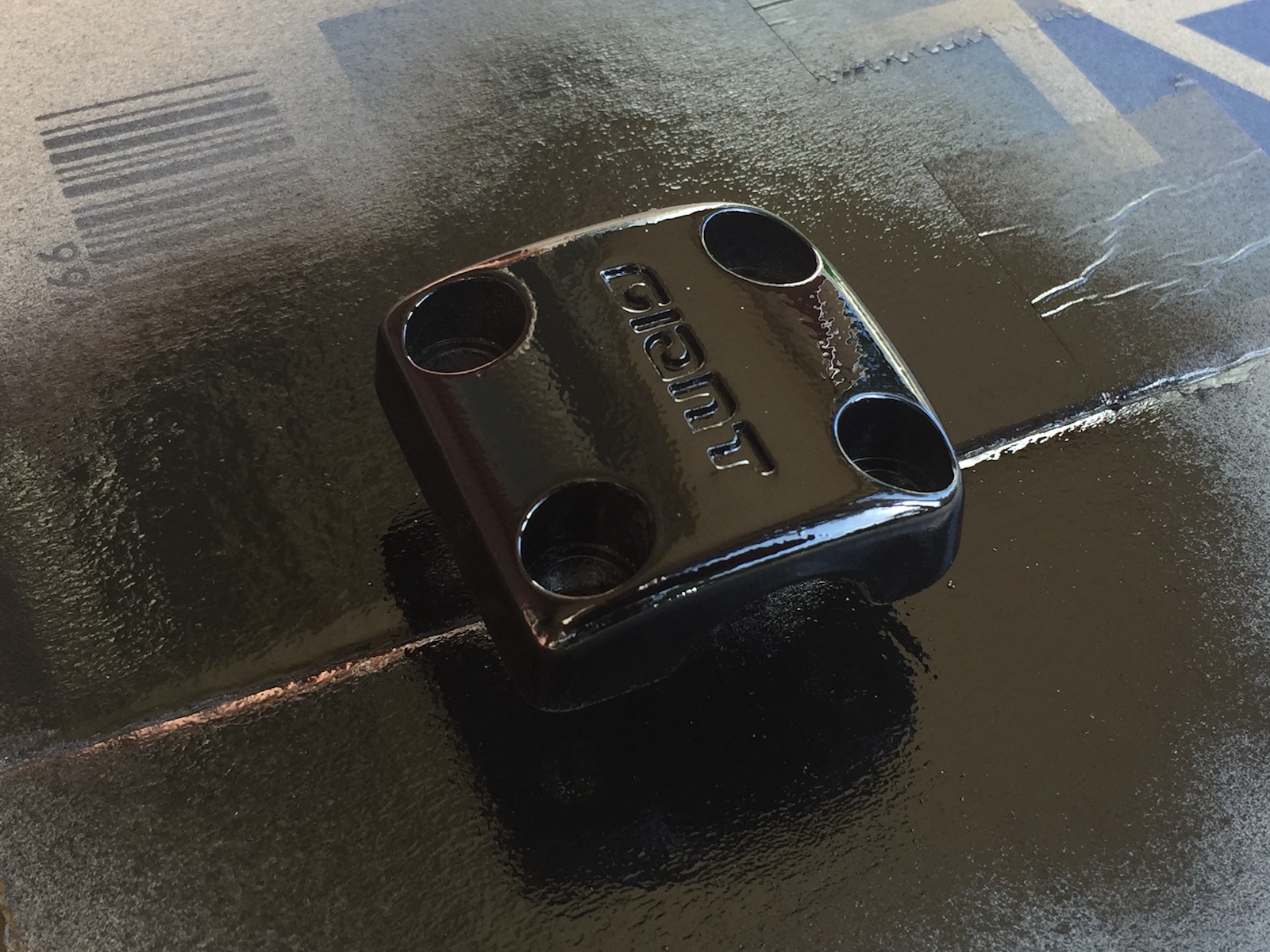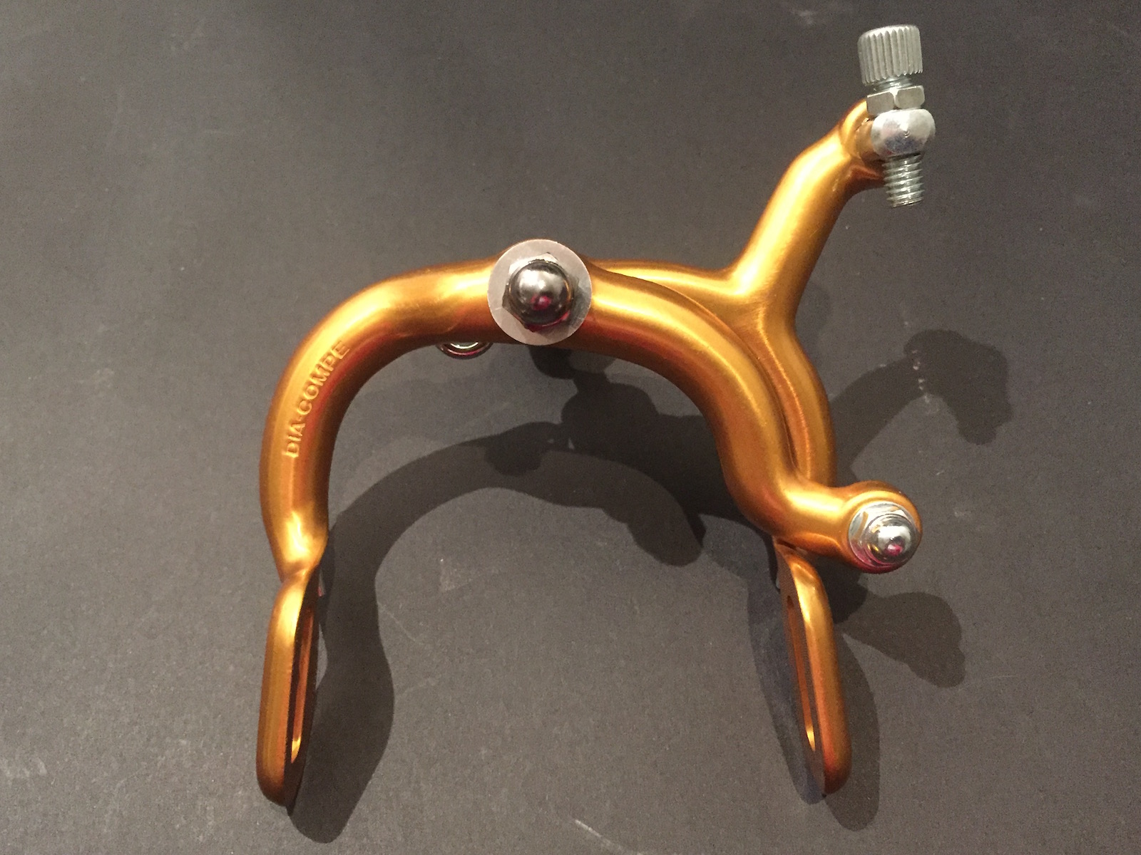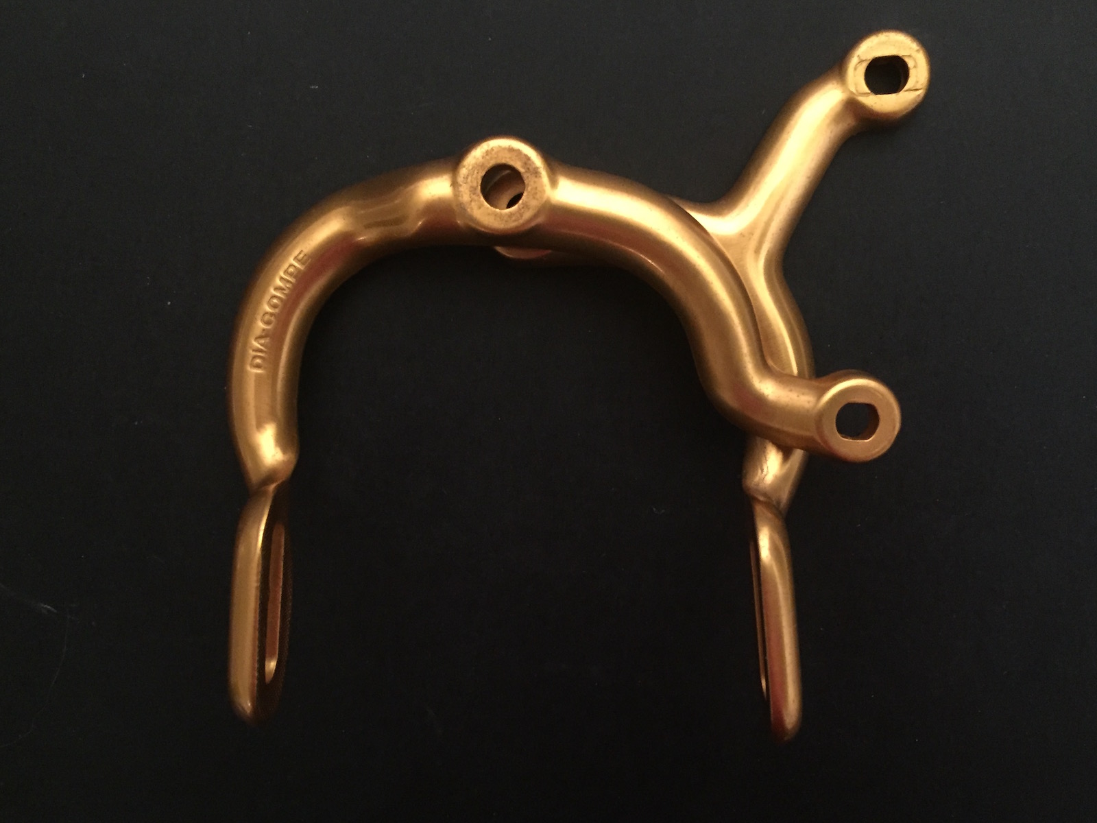 A lot of my builds have Shimano Tourney callipers on them so I decided to do something different on this build and found a nice Dia Compe 890 on eBay for $5. As you can see, it was in fairly good condition and after stripping it and removing some of the blemishes with wet-and-dry paper it was sent to Benny for him to perform some magic on it. The results were spectacular and after reassembling it with new hardware, it looks better than new!