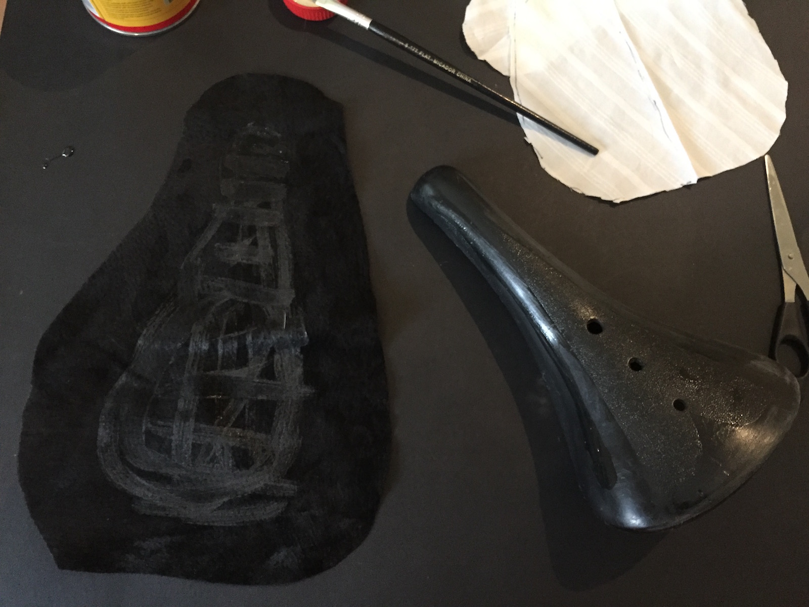 The last two shots show the completed seat. Being suede, fingerprints and the various directions the nap is brushed in makes the seat take on a variety of different hues. Mine is definitely black but can look grey at times or even brown as in the photos.
