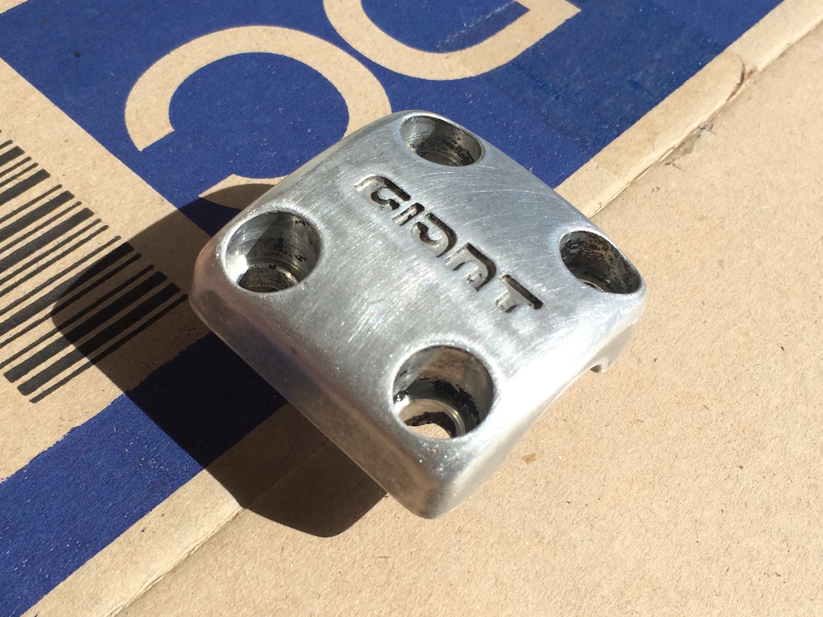 While waiting for the frame to arrive, I found this Giant stem on eBay US. It is for a later bike - probably a mid 80s - but would look great on the build. Again, I restored the base using some wet and dry paper and then a quick polish. The top was sanded back, etch primed and then coated in Satin black. That wet paint looks really thick in the pictures but dried to leave a nice, flat coat of paint.