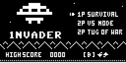 1nvader is a one or two-player game played with one button, one laser, one 1nvader, and one life. Play co-operatively, or competitively with a friend, or face the 1nvader alone.