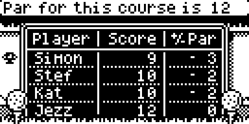 A Before starting your actual game of Golf, you must enter the PAR for each hole by moving the selector with the arrows and press A to switch to edit mode, then scroll the the needed value and confirm by pressing A again.