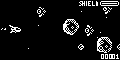 Your ship has been damaged by some space debris. The steering is broken and you cannot navigate. You discover that by firing the laser you can steer …sort of! Avoid the asteroids and enemy ships and fly home.