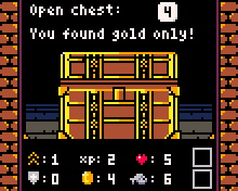 | XP: | You will be rewarded XP as you defeat monsters or stumble across treasures in the dungeon. | |