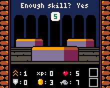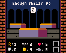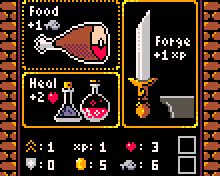 Mini Rogue has four starting levels that dictate the amount of armour, HP, gold and food you start your adventure with.