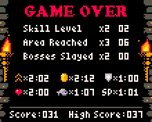 You are rewarded points for every area you enter, boss monster’s you kill and the collection of goodies along the way. To reset the scores, hold down the Up Button and Down Buttons simultaneously for about 5 seconds while on this screen.