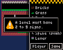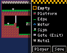 Press C to reveal the tile selector. In addition to selecting different tiles, you can also position the player at the start of the level by selecting the Player button at the bottom of the list.