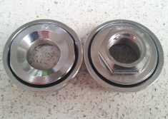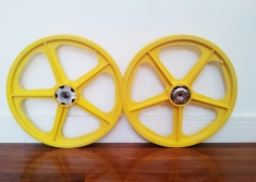 No sooner had he purchased the reproduction set, an original set became available on eBay and these were snapped up to replace the reproduction ones. Trent stripped out the guts, degreased both the hubs and wheels and left them to dry out. Once they dried out, he went over them with the Chux magic sponge to erase all but the most stubborn of stains. After hours of scrubbing he gave them both a couple coats of Mothers plastic / rubber restorer to bring out the original colour and eliminate that chalkiness you get with old Tuffs.