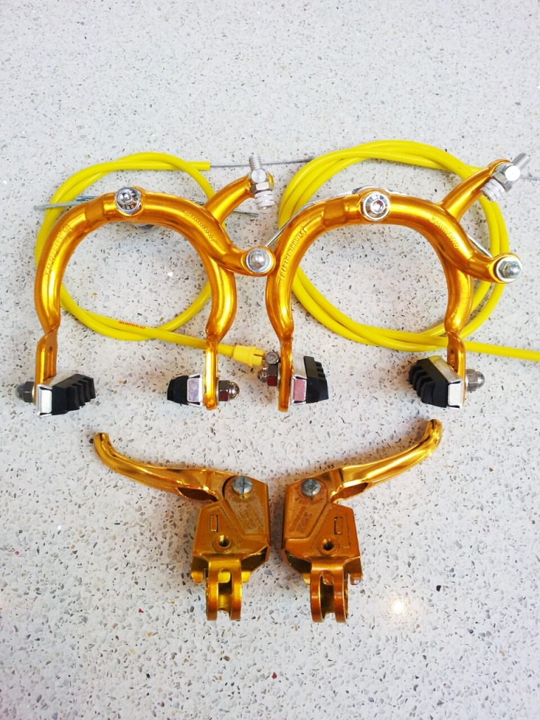 Apr 2015, Hall of Fame Not content to build another BMX Bandits replica, Lewis' has put a spin on the traditional black and yellow colour scheme by substituting anodised gold partsot give this bike a totally different, really clean and even a modern look. But everything is original - down to the correct Shimano calipers and levers, Takagi crank and chainwheel and KKT pedals. Nicely done!